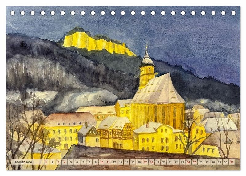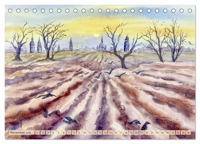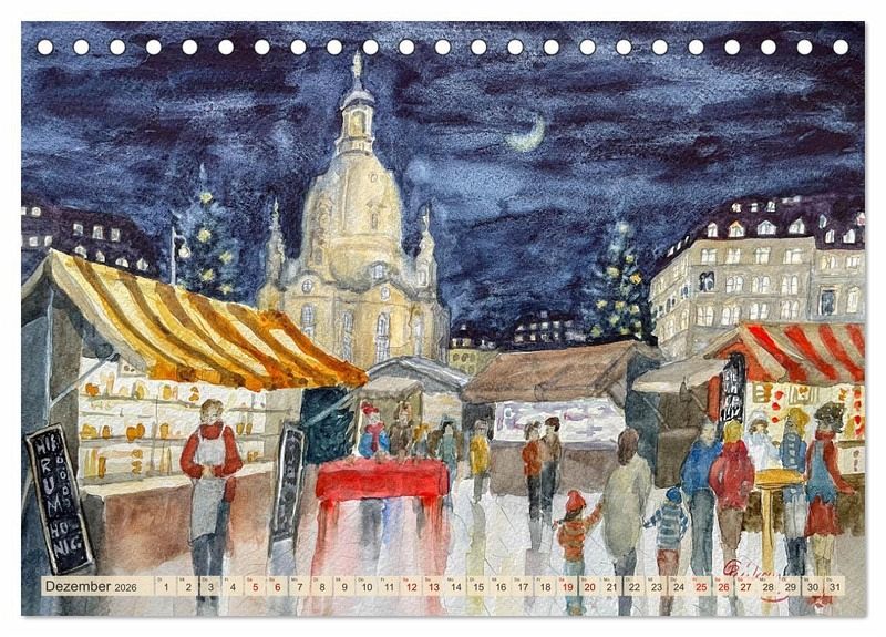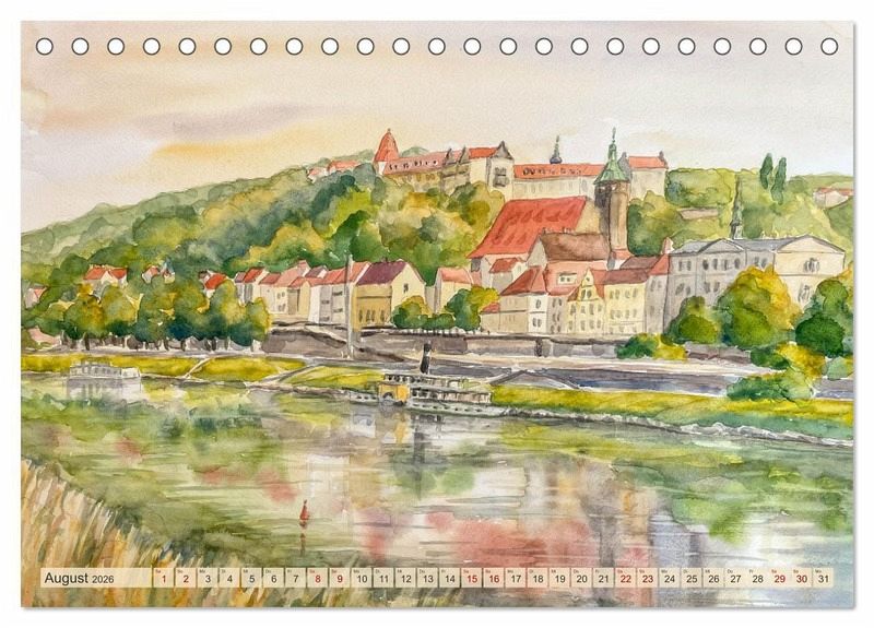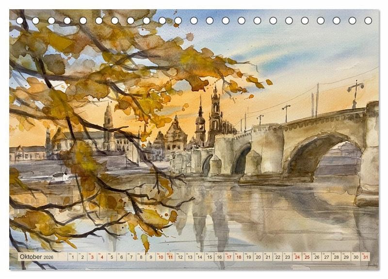 Entdecken Sie Dresden und das idyllische Elbtal auf eine ganz besondere Art: durch die atmosphärischen Aquarelle von Claudia Pinkau. Ihr Kalender bringt Monat für Monat die Schönheit dieser faszinierenden Region direkt in Ihr Zuhause.