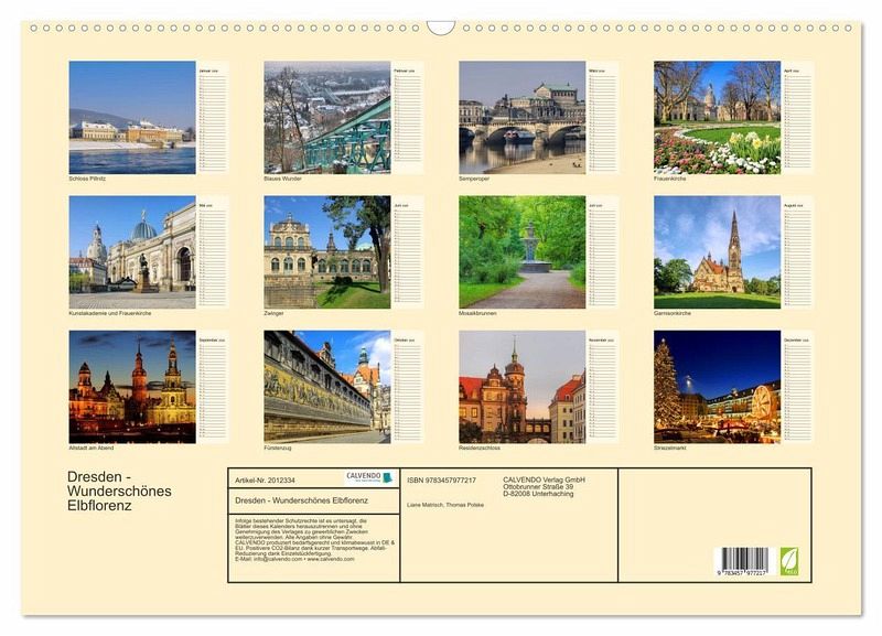 QUALITÄT - Hochwertiger Fotokalender mit 12 wunderschönen Motiven auf lichtbeständigem Bilderdruckpapier, robuste Spiralbindung mit Aufhängebügel.NACHHALTIG - deutliche Abfallreduzierung durch bedarfsgerechte Einzelstückfertigung, umweltfreundliches FSC-zertifiziertes Papier, Produktion in Deutschland, klimabewusste Logistik.PERFEKTES GESCHENK - Kalender für Freunde und Familie, für Kinder und Erwachsene, jung und alt, zu Weihnachten, Geburtstag oder zwischendurch.VIELFALT - Bildkalender in verschiedenen Formaten, z.B. DIN A5, DIN A4, DIN A3 sowie DIN A2. Ob Naturmotiv, Gemälde oder Fotos, ideal für ein persönliches Wohlfühlambiente.Abwechslungsreiche Fotos aus Dresden von Autor(in): Thomas Polske