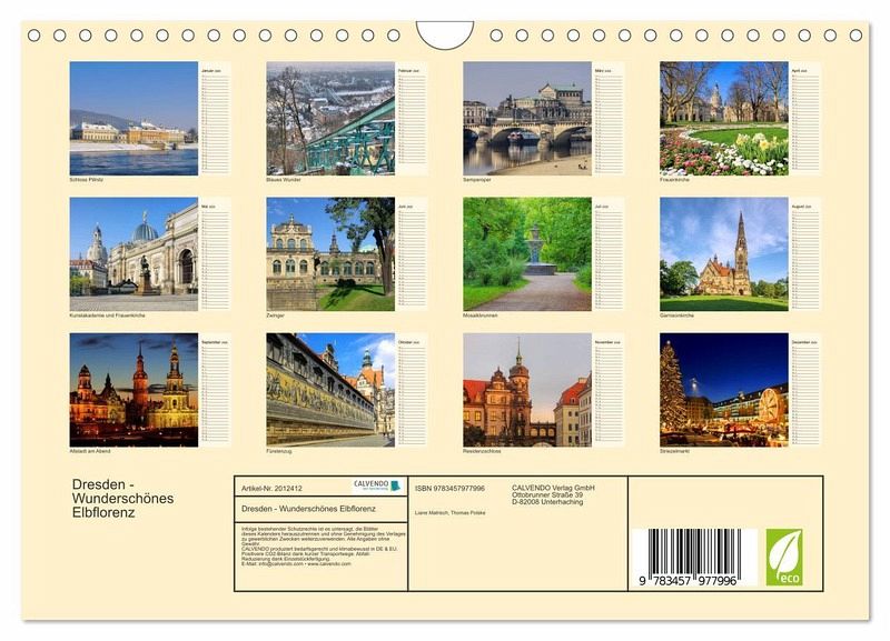 QUALITÄT - Hochwertiger Fotokalender mit 12 wunderschönen Motiven auf lichtbeständigem Bilderdruckpapier, robuste Spiralbindung mit Aufhängebügel.NACHHALTIG - deutliche Abfallreduzierung durch bedarfsgerechte Einzelstückfertigung, umweltfreundliches FSC-zertifiziertes Papier, Produktion in Deutschland, klimabewusste Logistik.PERFEKTES GESCHENK - Kalender für Freunde und Familie, für Kinder und Erwachsene, jung und alt, zu Weihnachten, Geburtstag oder zwischendurch.VIELFALT - Bildkalender in verschiedenen Formaten, z.B. DIN A5, DIN A4, DIN A3 sowie DIN A2. Ob Naturmotiv, Gemälde oder Fotos, ideal für ein persönliches Wohlfühlambiente.Abwechslungsreiche Fotos aus Dresden von Autor(in): Thomas Polske