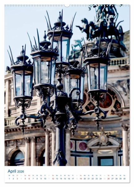 13 beeindruckende künstlerisch gestaltete Werke zum Thema "Dresdens schönste Laternen" des Dresdner Künstlers Max Steinwald in einem Kalender.