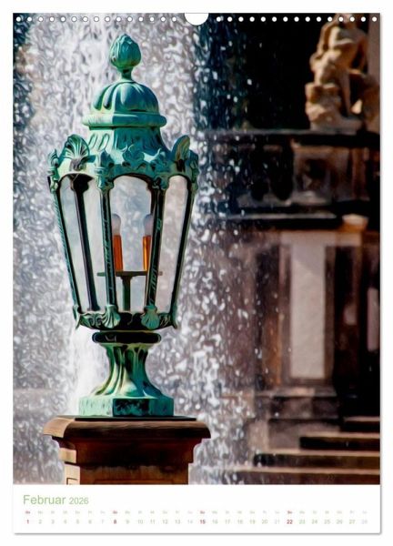 13 beeindruckende künstlerisch gestaltete Werke zum Thema "Dresdens schönste Laternen" des Dresdner Künstlers Max Steinwald in einem Kalender.