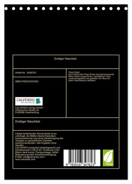 Der Fotokünstler Peter Roder hat beeindruckende Bilder dieser possierlichen, nachtaktiven Tiere zusammengestellt und gestaltet. Ein Muss für jeden Waschbären-Liebhaber.