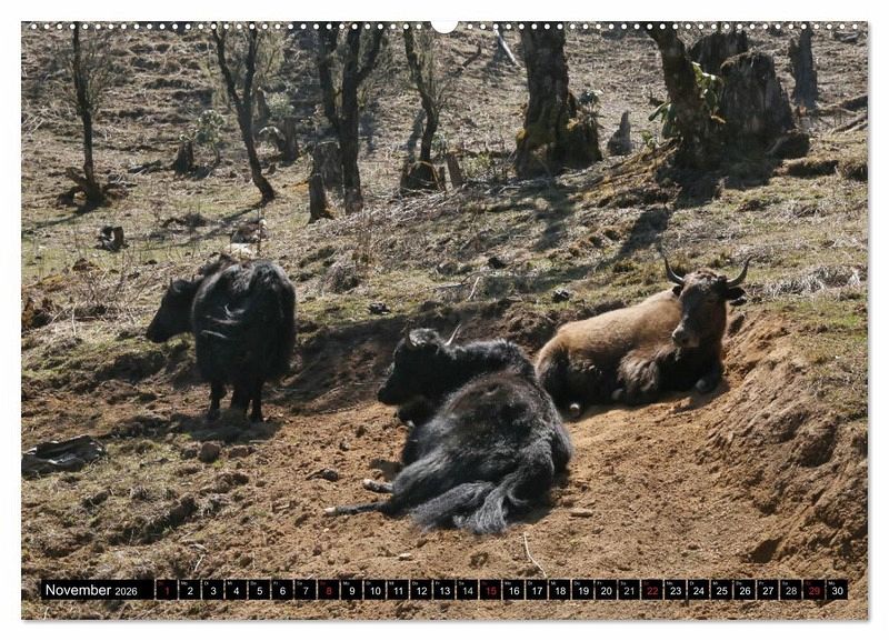 November: Yak in typischer Umgebung in etwa 3000 m HöheChendebji
