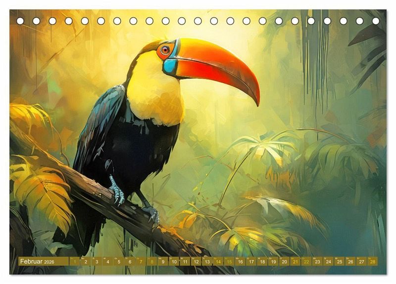 Erleben Sie eine faszinierende Welt des Dschungels mit unserem Kalender mit dem Titel Dschungel Faszination. Lassen Sie sich von kunstvollen Bildern unterschiedlicher Tiere wie Tiger, Gorilla, Kolibri und Schlange verzaubern und bringen Sie sich das Leben im Dschungel direkt nach Hause. Die harmonischen Farben, die leichte Abstraktion und der sanfte Hintergrund schaffen eine einzigartige Atmosphäre und machen diesen Kalender zu einem echten Blickfang in jedem Raum. Die Bilder wurden mit Hilfe der KI erstellt. Holen Sie sich jetzt den Zauber des Dschungels in Ihre vier Wände.