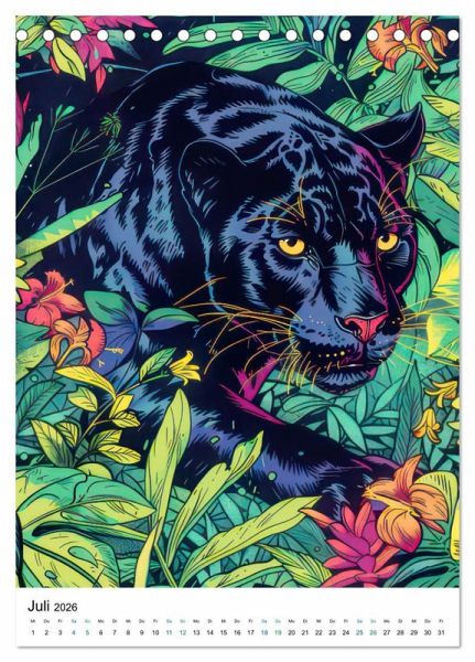 Lassen Sie sich von den kräftigen Farben und dynamischen Formen der Pop-Art verzaubern und bringen Sie ein Stück Wildnis in Ihr Zuhause oder Büro. Dieser Kalender ist nicht nur ein Blickfang, sondern auch eine Hommage an die Schönheit und Vielfalt der Natur und der Tierwelt.