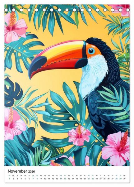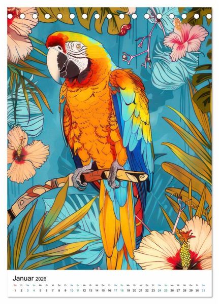 Tauchen Sie ein in die faszinierende Welt der Dschungeltiere im Pop-Art Stil. Dieser Kalender präsentiert Ihnen die exotischen Bewohner des Dschungels auf eine völlig neue und moderne Art. Von einem majestätischen Tiger über einen pirschenden Panther bis hin zu einem farbenfrohen Papagei, jedes Tier wird in lebendigen KI-Bildern dargestellt, umgeben von üppigem Dschungelblattwerk und exotischen Blumen.