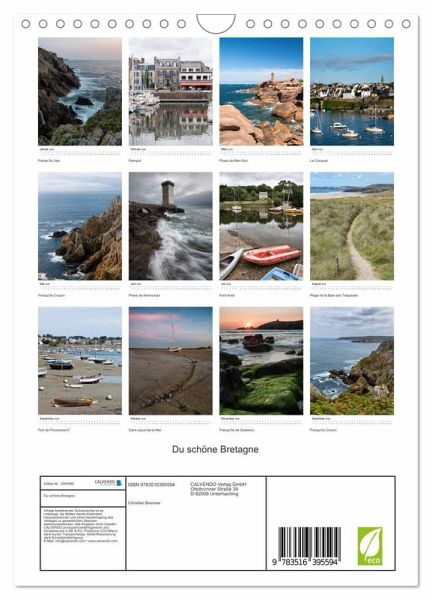 QUALITÄT - Hochwertiger Fotokalender mit 12 wunderschönen Motiven auf lichtbeständigem Bilderdruckpapier, robuste Spiralbindung mit Aufhängebügel.NACHHALTIG - deutliche Abfallreduzierung durch bedarfsgerechte Einzelstückfertigung, umweltfreundliches FSC-zertifiziertes Papier, Produktion in Deutschland, klimabewusste Logistik.PERFEKTES GESCHENK - Kalender für Freunde und Familie, für Kinder und Erwachsene, jung und alt, zu Weihnachten, Geburtstag oder zwischendurch.VIELFALT - Bildkalender in verschiedenen Formaten, z.B. DIN A5, DIN A4, DIN A3 sowie DIN A2. Ob Naturmotiv, Gemälde oder Fotos, ideal für ein persönliches Wohlfühlambiente.die schönsten Orte der Bretagne von Autor(in): Christian Bremser