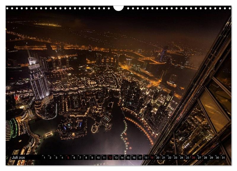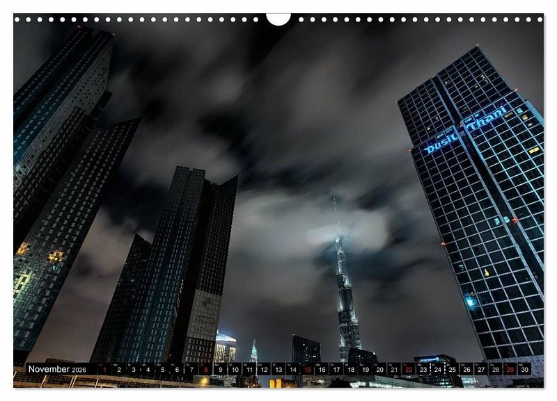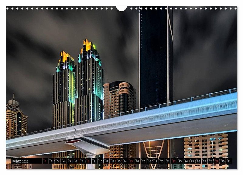 Dubai, die Wüstenstadt in der Nacht, wie im Märchen von 1001 Nacht. Dubai die Stadt der Superlative als Wandkalender.