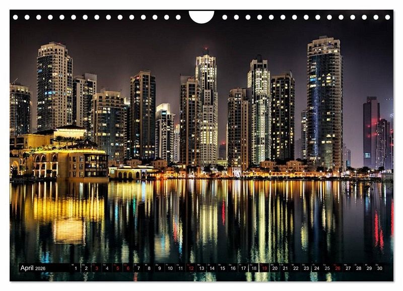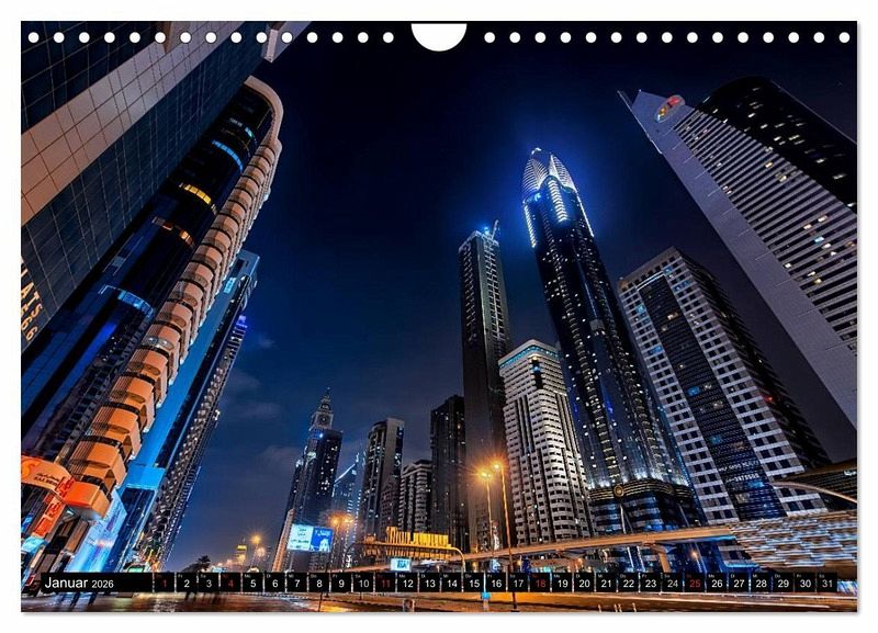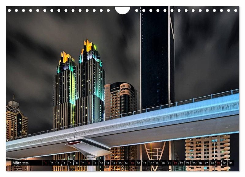 Dubai, die Wüstenstadt in der Nacht, wie im Märchen von 1001 Nacht. Dubai die Stadt der Superlative als Wandkalender.