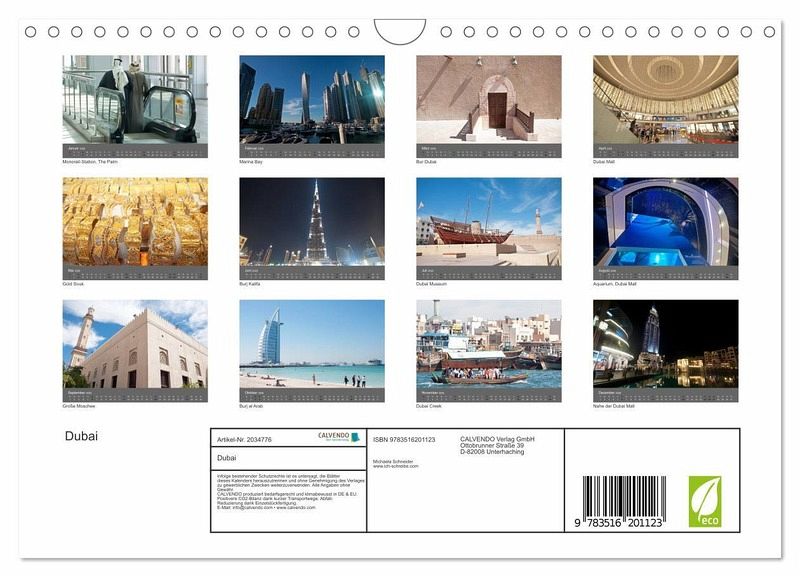 QUALITÄT - Hochwertiger Fotokalender mit 12 wunderschönen Motiven auf lichtbeständigem Bilderdruckpapier, robuste Spiralbindung mit Aufhängebügel.NACHHALTIG - deutliche Abfallreduzierung durch bedarfsgerechte Einzelstückfertigung, umweltfreundliches FSC-zertifiziertes Papier, Produktion in Deutschland, klimabewusste Logistik.PERFEKTES GESCHENK - Kalender für Freunde und Familie, für Kinder und Erwachsene, jung und alt, zu Weihnachten, Geburtstag oder zwischendurch.VIELFALT - Bildkalender in verschiedenen Formaten, z.B. DIN A5, DIN A4, DIN A3 sowie DIN A2. Ob Naturmotiv, Gemälde oder Fotos, ideal für ein persönliches Wohlfühlambiente.Stadtspaziergang in Dubai von Autor(in): Michaela Schneider