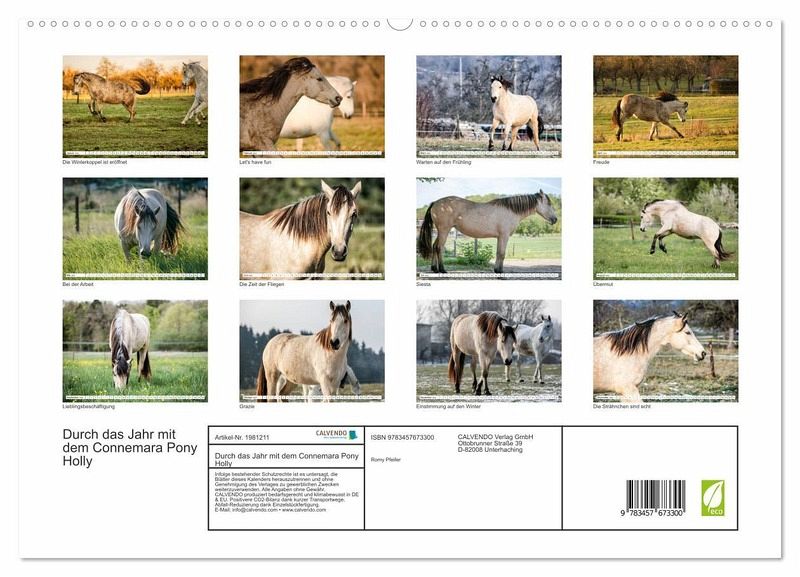 PREMIUM-LINIE - Brillanter Fotokalender mit 12 wunderschönen Motiven, Kunstdruck in Hochglanz in Museumsqualität.QUALITÄT - edle Materialien, stabile Rückwand mit 2 innovativen Einstecktaschen für eine optimale Präsentation an der Wand.NACHHALTIG - deutliche Abfallreduzierung durch bedarfsgerechte Einzelstückfertigung, umweltfreundliches FSC-zertifiziertes Papier, Produktion in Deutschland, klimabewusste Logistik.PERFEKTES GESCHENK - Kalender für Freunde und Familie, für Kinder und Erwachsene, jung und alt, zu Weihnachten, Geburtstag oder zwischendurch.Bilder eines jungen Connemara Ponys durch die Jahreszeiten. von Autor(in): Romy Pfeifer