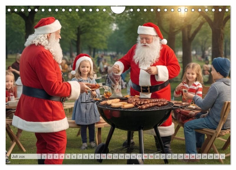 Juli: Ein Weihnachtsmannpicknick im Sommer.