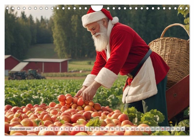September: Der Weihnachtsmann hilft bei der Ernte.