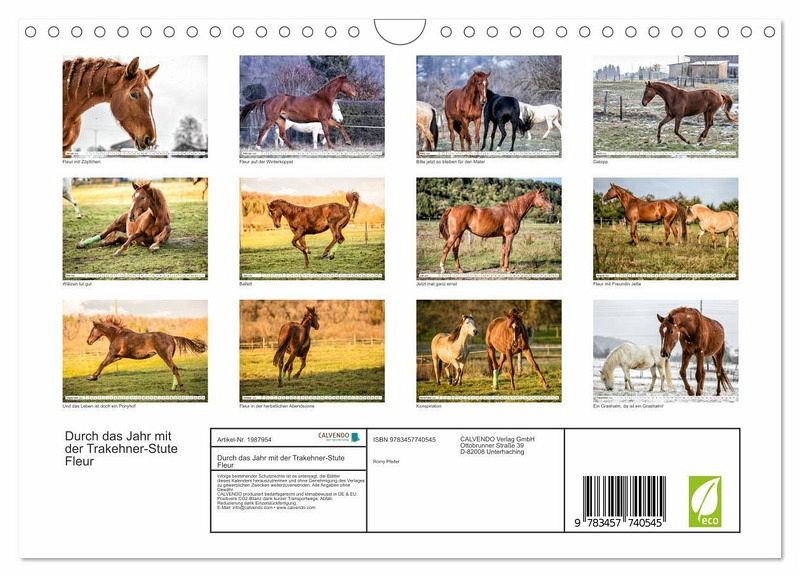 QUALITÄT - Hochwertiger Fotokalender mit 12 wunderschönen Motiven auf lichtbeständigem Bilderdruckpapier, robuste Spiralbindung mit Aufhängebügel.NACHHALTIG - deutliche Abfallreduzierung durch bedarfsgerechte Einzelstückfertigung, umweltfreundliches FSC-zertifiziertes Papier, Produktion in Deutschland, klimabewusste Logistik.PERFEKTES GESCHENK - Kalender für Freunde und Familie, für Kinder und Erwachsene, jung und alt, zu Weihnachten, Geburtstag oder zwischendurch.VIELFALT - Bildkalender in verschiedenen Formaten, z.B. DIN A5, DIN A4, DIN A3 sowie DIN A2. Ob Naturmotiv, Gemälde oder Fotos, ideal für ein persönliches Wohlfühlambiente.Bilder einer jungen Trakehner-Stute im Laufe des Jahres von Autor(in): Romy Pfeifer