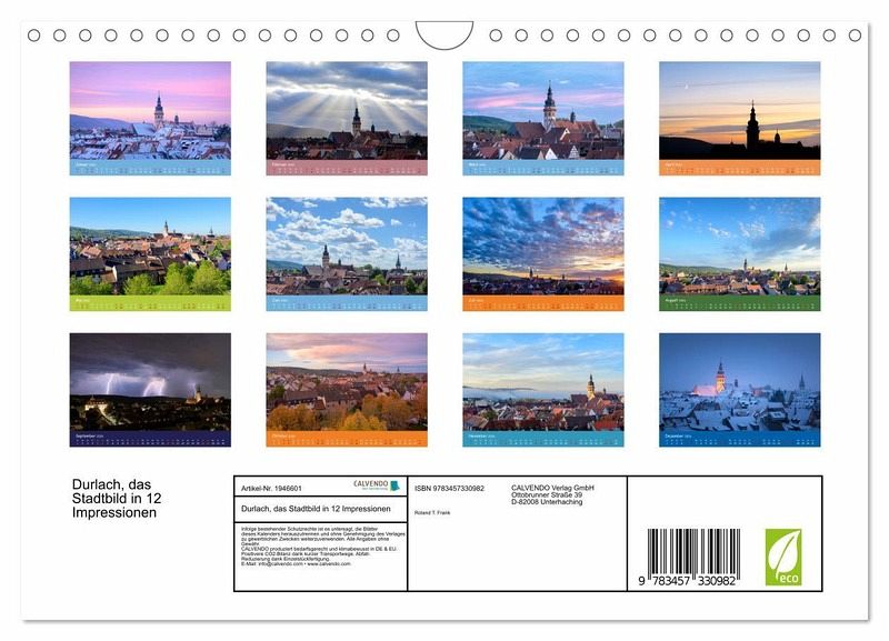 QUALITÄT - Hochwertiger Fotokalender mit 12 wunderschönen Motiven auf lichtbeständigem Bilderdruckpapier, robuste Spiralbindung mit Aufhängebügel.NACHHALTIG - deutliche Abfallreduzierung durch bedarfsgerechte Einzelstückfertigung, umweltfreundliches FSC-zertifiziertes Papier, Produktion in Deutschland, klimabewusste Logistik.PERFEKTES GESCHENK - Kalender für Freunde und Familie, für Kinder und Erwachsene, jung und alt, zu Weihnachten, Geburtstag oder zwischendurch.VIELFALT - Bildkalender in verschiedenen Formaten, z.B. DIN A5, DIN A4, DIN A3 sowie DIN A2. Ob Naturmotiv, Gemälde oder Fotos, ideal für ein persönliches Wohlfühlambiente.Die mittelalterliche Stadtsilhouette von Durlach in verschiedenen Stimmungen von Autor(in): Roland T. Frank