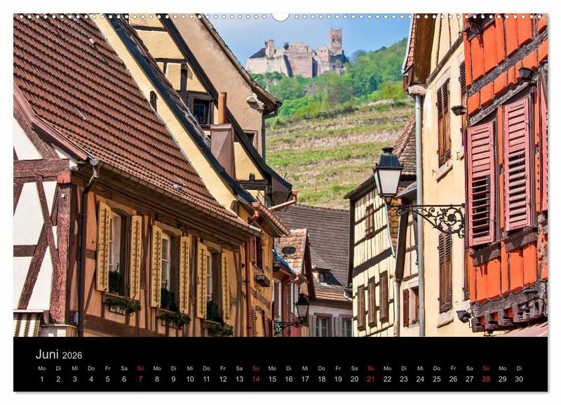Juni: Altstadt von Ribeauvillé, Blick zur Ruine St. Ulrich