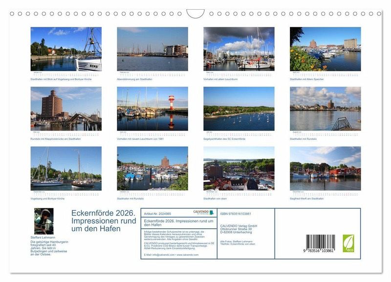 QUALITÄT - Hochwertiger Fotokalender mit 12 wunderschönen Motiven auf lichtbeständigem Bilderdruckpapier, robuste Spiralbindung mit Aufhängebügel.NACHHALTIG - deutliche Abfallreduzierung durch bedarfsgerechte Einzelstückfertigung, umweltfreundliches FSC-zertifiziertes Papier, Produktion in Deutschland, klimabewusste Logistik.PERFEKTES GESCHENK - Kalender für Freunde und Familie, für Kinder und Erwachsene, jung und alt, zu Weihnachten, Geburtstag oder zwischendurch.VIELFALT - Bildkalender in verschiedenen Formaten, z.B. DIN A5, DIN A4, DIN A3 sowie DIN A2. Ob Naturmotiv, Gemälde oder Fotos, ideal für ein persönliches Wohlfühlambiente.Impressionen von der Stadt mit vier Häfen: Eckernförde. von Autor(in): Steffani Lehmann