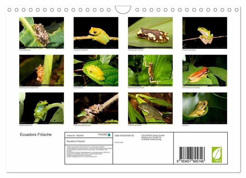 Zauberhafte Nahaufnahmen aus der Welt der ecuadorianischen Fröschen. Farbenfrohe Bilder begleiten Sie durch das ganze Jahr. Ein schönes Geschenk für alle Naturliebhaber.