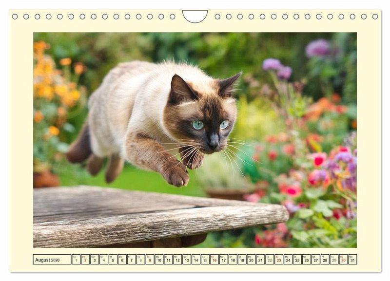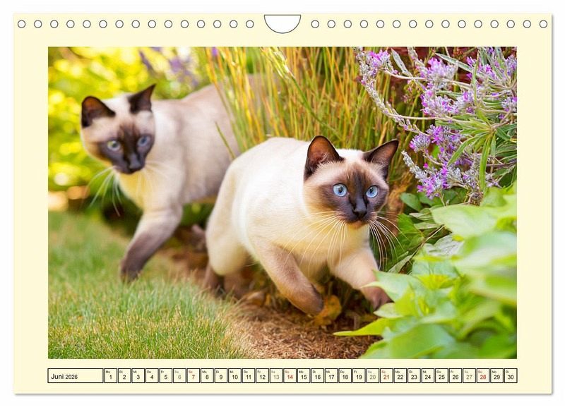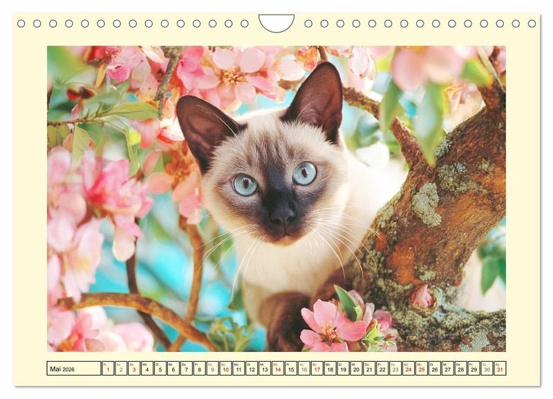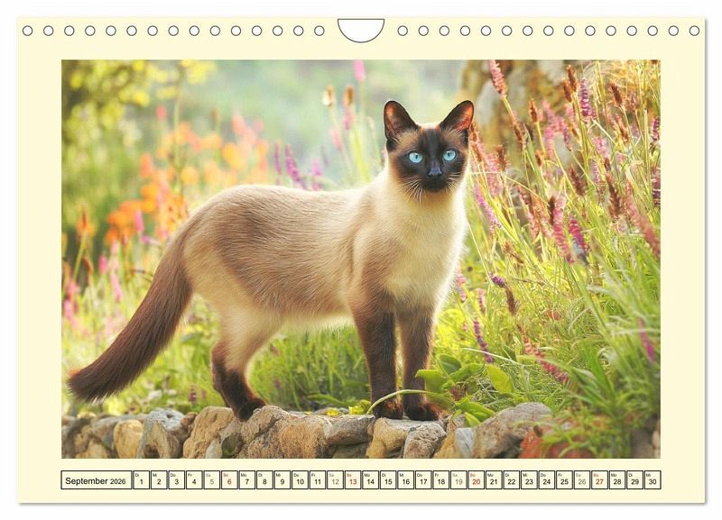 Die Siamkatze zählt zu den ausdrucksstärksten und edelsten Katzenrassen der Welt. Mit ihren tiefblauen Augen, dem schlanken Körperbau und dem neugierigen Wesen zieht sie alle Blicke auf sich. Dieser Kalender wurde mit Hilfe von KI erstellt und zeigt Siamkatzen in harmonischer Verbindung mit der Natur - mal verträumt, mal lebhaft. Jede Szene spiegelt ihren einzigartigen Charakter und ihre natürliche Schönheit wider.