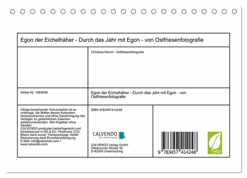 QUALITÄT - Hochwertiger Fotokalender mit 12 wunderschönen Motiven auf lichtbeständigem Bilderdruckpapier, robuste Spiralbindung.NACHHALTIG - deutliche Abfallreduzierung durch bedarfsgerechte Einzelstückfertigung, umweltfreundliches FSC-zertifiziertes Papier, Produktion in Deutschland, klimabewusste Logistik.PERFEKTES GESCHENK - Kalender für Freunde und Familie, für Kinder und Erwachsene, jung und alt, zu Weihnachten, Geburtstag oder zwischendurch.VIELFALT - Bildkalender in verschiedenen Formaten, z.B. DIN A5, DIN A4, DIN A3 sowie DIN A2. Ob Naturmotiv, Gemälde oder Fotos, ideal für ein persönliches Wohlfühlambiente.Ein Eichelhäher namens Egon, der bunte Rabenvogel zeigt sich wieder von seiner besten Seite von Autor(in): Christina Worch