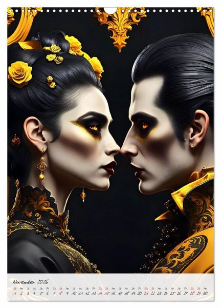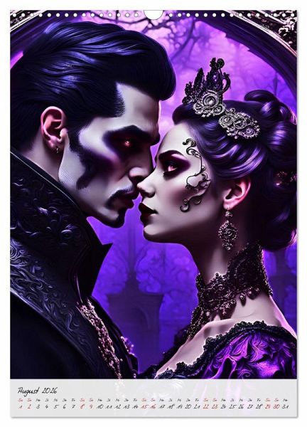 Entdecken Sie die dunkle Seite der Liebe mit dem Kalender Paare der Finsternis. Tauchen Sie ein in eine Welt voller düsterer Romantik und unsterblicher Leidenschaft, während jede Seite dieses Kalenders die faszinierende Bindung von Vampirpaaren in den Schatten zeigt. Von blutroter Romantik bis hin zu mysteriöser Anziehungskraft enthüllt jeder Monat ein neues Kapitel dieser unsterblichen Liebesgeschichten, die in der Finsternis gedeihen. Dieser Kalender ist perfekt für Liebhaber des Übernatürlichen und der dunklen Romantik. Ein Muss für alle, die sich nach einem Hauch von Geheimnis und Leidenschaft sehnen.