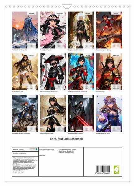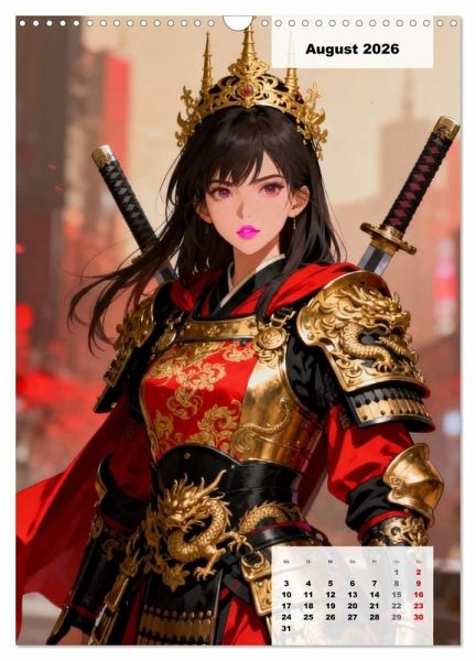 Tauche ein in eine faszinierende Welt voller Ehre, Mut und Schönheit! Dieser einzigartig gestaltete Anime-Kalender vereint imposante Heldinnen, prachtvolle Rüstungen und epische Momente, fesselnd inszeniert im typischen Stil japanischer Zeichenkunst. Zwölf beeindruckende Motive erzählen Geschichten von Tapferkeit, Stolz und der Stärke außergewöhnlicher Frauen. Alle Illustrationen wurden kunstvoll KI-generiert und präsentieren Anime-Kunst auf einem neuen Level. Lass dich Monat für Monat von diesen inspirierenden Kämpferinnen begleiten und erlebe, wie Fantasie und Tradition miteinander verschmelzen.