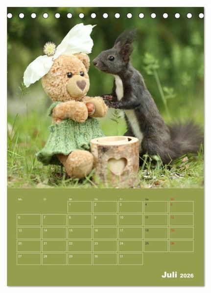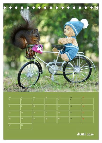 Eichhörnchen gehören zu den beliebtesten Wildtieren. Unsere einheimischen Eichhörnchen gibt es in verschiedenen Fellfarben die Sie im Kalender auch sehen können. Ihre Fellfarbe ist rot, braun, gemischte Farben oder aber auch ganz schwarz. Einen weißen Bauch haben alle unsere Eichhörnchen. Mit ihrer neugierigen, süßen Art verzaubern Sie uns immer wieder aufs Neue. Die Regensburger Eichhörnchen wissen schon, wenn Freund Teddy zu sehen ist, dann gibt es auch immer leckere Nüsse. Die süßen Outfits hat Rosita Roscher-Einsporn für Teddy angefertigt.