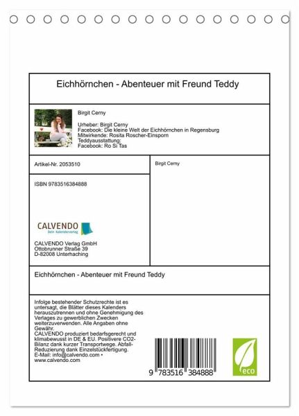Die Autorin Birgit Cerny schaut bereits seit vielen Jahren nach den Eichhörnchen in den Regensburger Parks und versorgt sie regelmäßig mit Nüssen, Obst und Wasser. Der Kalender zaubert Ihnen bestimmt jeden Tag aufs Neue ein Lächeln ins Gesicht. Viel Spaß damit!