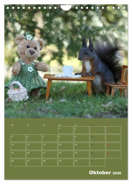 September: Teddy und Eichhörnchen trinken zusammen Kaffee.