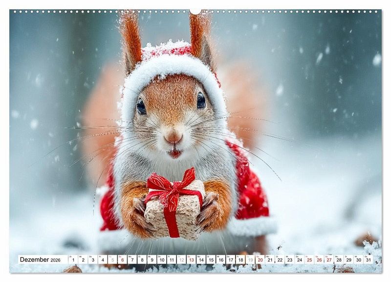 Dezember: Weihnachtseichhörnchen wünscht: Frohe Weihnachten!