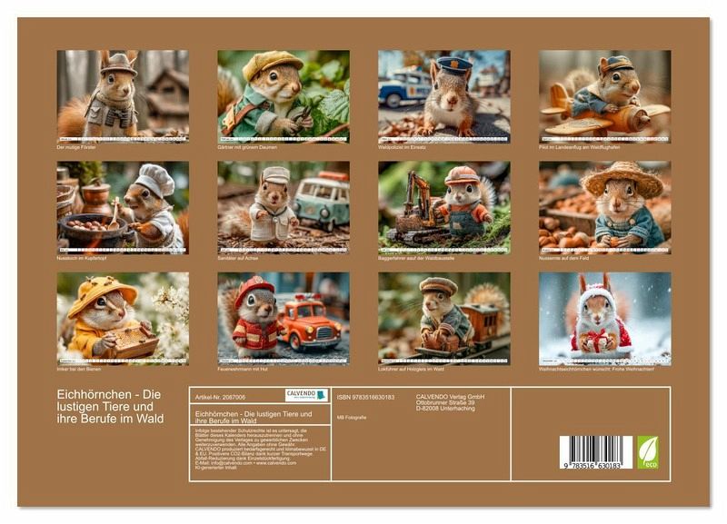 Dieser liebevoll gestaltete Tierkalender zeigt lustige Eichhörnchen in Berufen und bringt Wildtiere kindgerecht ins Kinderzimmer. Der Kinderkalender ist ideal für Kinder, die Tiere lieben, und eignet sich perfekt als Geschenk für Familien oder zur Dekoration im Kinderzimmer. Die charmanten Motive zeigen das beliebte Hörnchen als Förster, Gärtner oder Feuerwehrmann - humorvoll und kreativ in Szene gesetzt. Auch als Nager und Wald-Wildtier bekannt, ist das Eichhörnchen ein echter Liebling unter Kindern. Die Bilder mit KI generiert, verbinden hochwertige Optik mit originellen Ideen. Ein kreativer Tierkalender für Kinder, der spielerisch Neugier auf Wald und Natur weckt.