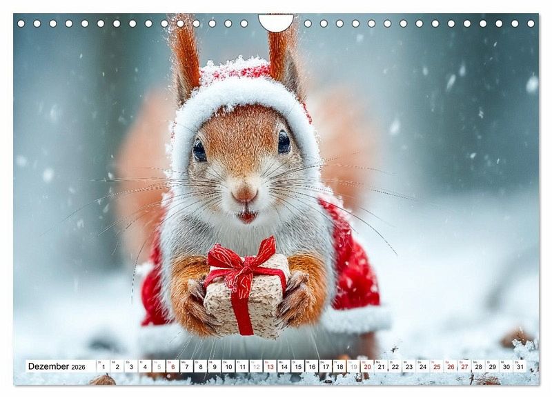 Dezember: Weihnachtseichhörnchen wünscht: Frohe Weihnachten!