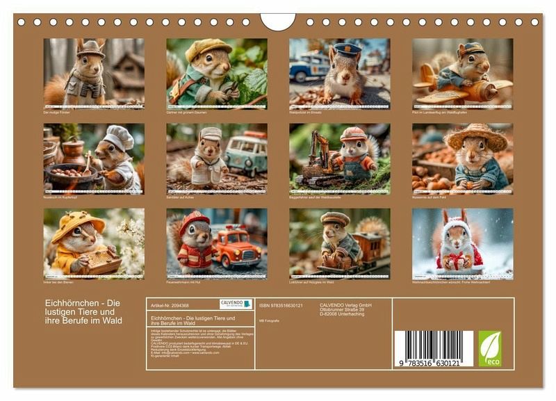 Dieser liebevoll gestaltete Tierkalender zeigt lustige Eichhörnchen in Berufen und bringt Wildtiere kindgerecht ins Kinderzimmer. Der Kinderkalender ist ideal für Kinder, die Tiere lieben, und eignet sich perfekt als Geschenk für Familien oder zur Dekoration im Kinderzimmer. Die charmanten Motive zeigen das beliebte Hörnchen als Förster, Gärtner oder Feuerwehrmann - humorvoll und kreativ in Szene gesetzt. Auch als Nager und Wald-Wildtier bekannt, ist das Eichhörnchen ein echter Liebling unter Kindern. Die Bilder mit KI generiert, verbinden hochwertige Optik mit originellen Ideen. Ein kreativer Tierkalender für Kinder, der spielerisch Neugier auf Wald und Natur weckt.