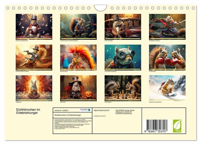 Entdecke die abenteuerliche Welt unseres Eichhörnchens. Eine bunte Vielfalt an Tätigkeiten, die dieser niedliche Nager meistert, erwartet Dich. Vom Samurai bis hin zum wilden Snowboarden, vom Boxkampf bis zum entspannenden Yoga. Dieser Kalender ist randvoll mit humorvollen KI-Bildern in prächtigen Farben, die dich zum Schmunzeln bringen werden.