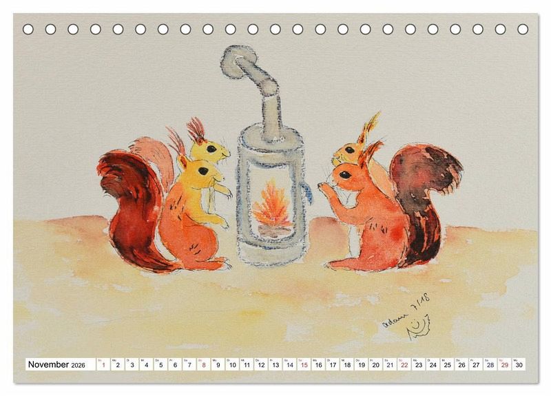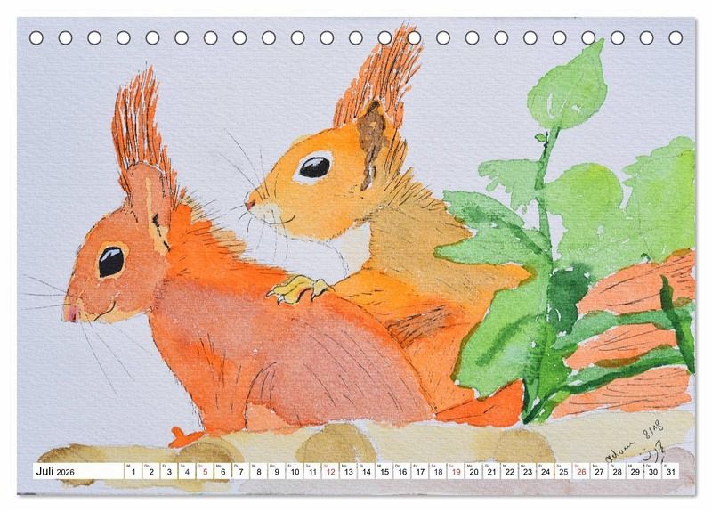 Meine wilden Garteneichhörnchen wurden diesmal nicht fotografiert, sondern liebevoll in Aquarelltechnik gemalt. Auch die gemalten Eichhörnchen erleben allerhand. Sie treffen Meisen und Rotkehlchen und wärmen sich im Winter vorm warmen Ofen. Natürlich sind auch die beiden Eichhörnchengeschwister Anton und Antonia mit dabei. Ein Eichhörnchenkalender der besonderen Art und ein ideales Geschenk für alle Eichhörnchenfreunde!