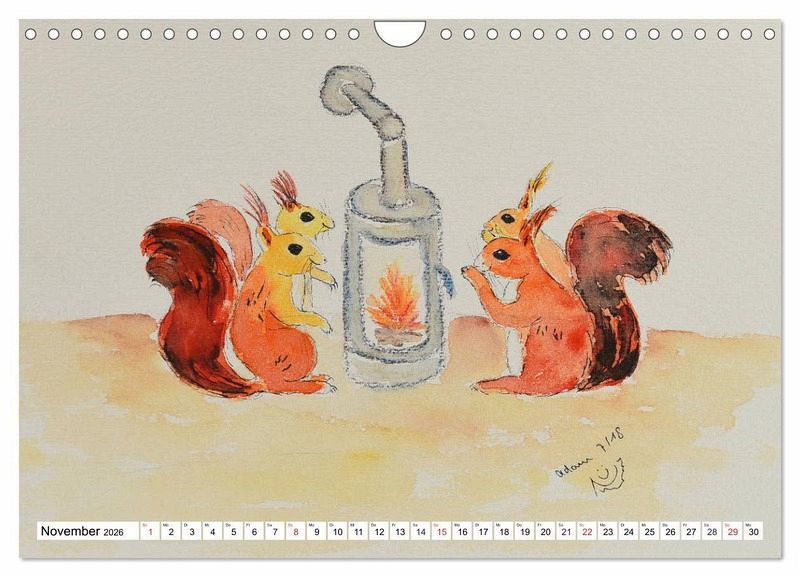 Meine wilden Garteneichhörnchen wurden diesmal nicht fotografiert, sondern liebevoll in Aquarelltechnik gemalt. Auch die gemalten Eichhörnchen erleben allerhand. Sie treffen Meisen und Rotkehlchen und wärmen sich im Winter vorm warmen Ofen. Natürlich sind auch die beiden Eichhörnchengeschwister Anton und Antonia mit dabei. Ein Eichhörnchenkalender der besonderen Art und ein ideales Geschenk für alle Eichhörnchenfreunde!