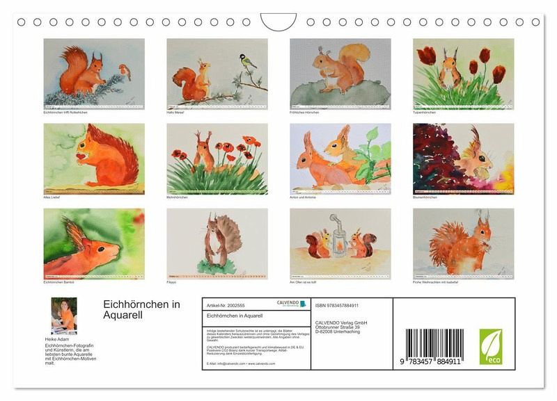 QUALITÄT - Hochwertiger Fotokalender mit 12 wunderschönen Motiven auf lichtbeständigem Bilderdruckpapier, robuste Spiralbindung mit Aufhängebügel.NACHHALTIG - deutliche Abfallreduzierung durch bedarfsgerechte Einzelstückfertigung, umweltfreundliches FSC-zertifiziertes Papier, Produktion in Deutschland, klimabewusste Logistik.PERFEKTES GESCHENK - Kalender für Freunde und Familie, für Kinder und Erwachsene, jung und alt, zu Weihnachten, Geburtstag oder zwischendurch.VIELFALT - Bildkalender in verschiedenen Formaten, z.B. DIN A5, DIN A4, DIN A3 sowie DIN A2. Ob Naturmotiv, Gemälde oder Fotos, ideal für ein persönliches Wohlfühlambiente.Eichhörnchen, liebevoll gemalt in Aquarelltechnik von Autor(in): Heike Adam