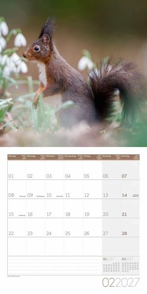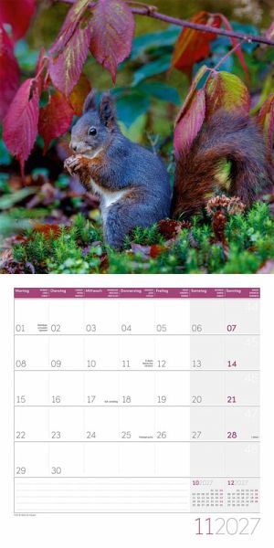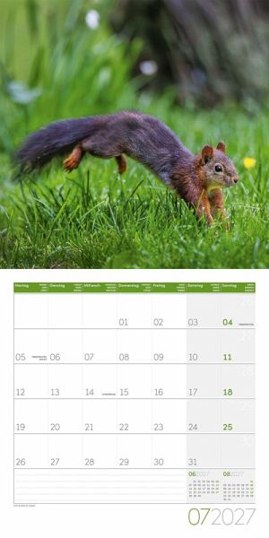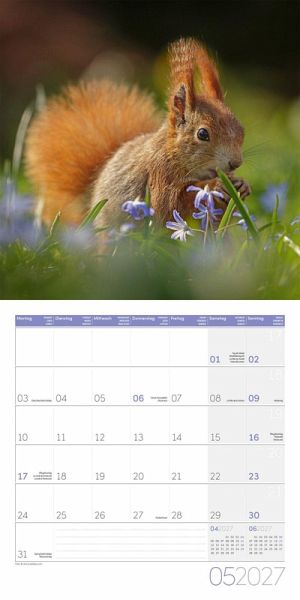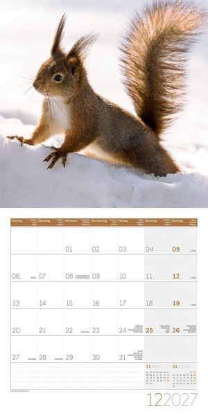 Hochwertiger Art12-Collection-BroschürenkalenderEichhörnchen-Kalender im schlanken Hochformat: 30x30 cm, (aufgeklappt 30x60 cm)Kalendarium mit Platz für Notizen, inklusive JahresplanerAuf Papier aus nachhaltiger Forstwirtschaft in Deutschland produziertLeistet einen Beitrag zum Ackermann Firmenwald4-sprachiges Kalendarium: Deutsch, Englisch, Französisch, Italienisch