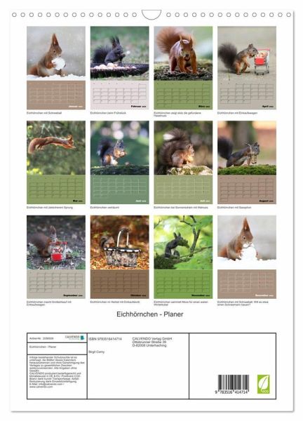 QUALITÄT - Hochwertiger Fotokalender mit 12 wunderschönen Motiven auf lichtbeständigem Bilderdruckpapier, robuste Spiralbindung mit Aufhängebügel.NACHHALTIG - deutliche Abfallreduzierung durch bedarfsgerechte Einzelstückfertigung, umweltfreundliches FSC-zertifiziertes Papier, Produktion in Deutschland, klimabewusste Logistik.PERFEKTES GESCHENK - Kalender für Freunde und Familie, für Kinder und Erwachsene, jung und alt, zu Weihnachten, Geburtstag oder zwischendurch.VIELFALT - Bildkalender in verschiedenen Formaten, z.B. DIN A5, DIN A4, DIN A3 sowie DIN A2. Ob Naturmotiv, Gemälde oder Fotos, ideal für ein persönliches Wohlfühlambiente.Eichhörnchen Familienplaner von Autor(in): Birgit Cerny
