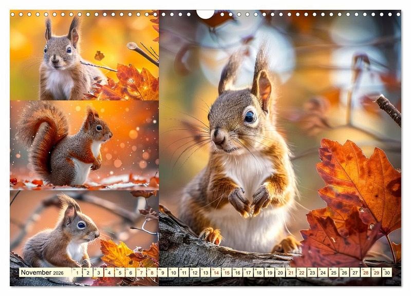 Begeben Sie sich mit diesem entzückenden Kalender in das Reich der Eichhörnchen. Mit individuellen Porträts und reizvollen Fotocollagen geschmückt, erweckt jeder Monat diese liebenswerten Geschöpfe in lebhaften Details zum Leben. Erkunden Sie ihren Lebensraum, beobachten Sie ihre geschäftige Nahrungssuche und auch ihre Versteckkünste der Samen und Früchte für den Winter. Mit ihrem buschigen Schwanz, ihren kräftigen Hinterbeinen und scharfen Krallen bietet sich für die putzigen Tierchen überall in den Bäumen eine Sitzgelegenheit. Der Fotokünstler Peter Roder hat fantastische KI-Bilder gestaltet und zusammengestellt. Zwölf wunderschöne Bilder, die alle Tierfans begeistern.