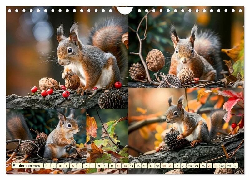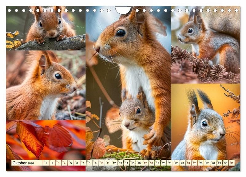 Begeben Sie sich mit diesem entzückenden Kalender in das Reich der Eichhörnchen. Mit individuellen Porträts und reizvollen Fotocollagen geschmückt, erweckt jeder Monat diese liebenswerten Geschöpfe in lebhaften Details zum Leben. Erkunden Sie ihren Lebensraum, beobachten Sie ihre geschäftige Nahrungssuche und auch ihre Versteckkünste der Samen und Früchte für den Winter. Mit ihrem buschigen Schwanz, ihren kräftigen Hinterbeinen und scharfen Krallen bietet sich für die putzigen Tierchen überall in den Bäumen eine Sitzgelegenheit. Der Fotokünstler Peter Roder hat fantastische KI-Bilder gestaltet und zusammengestellt. Zwölf wunderschöne Bilder, die alle Tierfans begeistern.