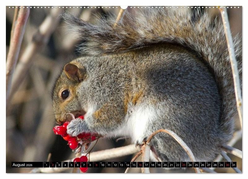 Februar: Östliches Grauhörnchen. Quebec, Kanada