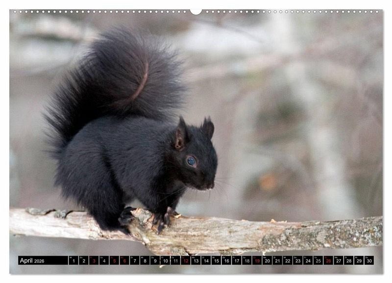 April: Östliches Grauhörnchen (melanistisch). Quebec, Kanada