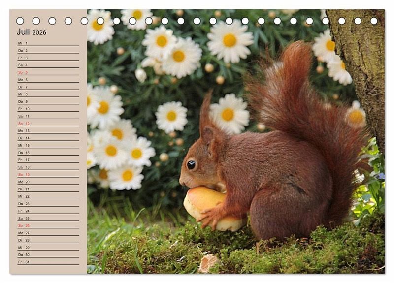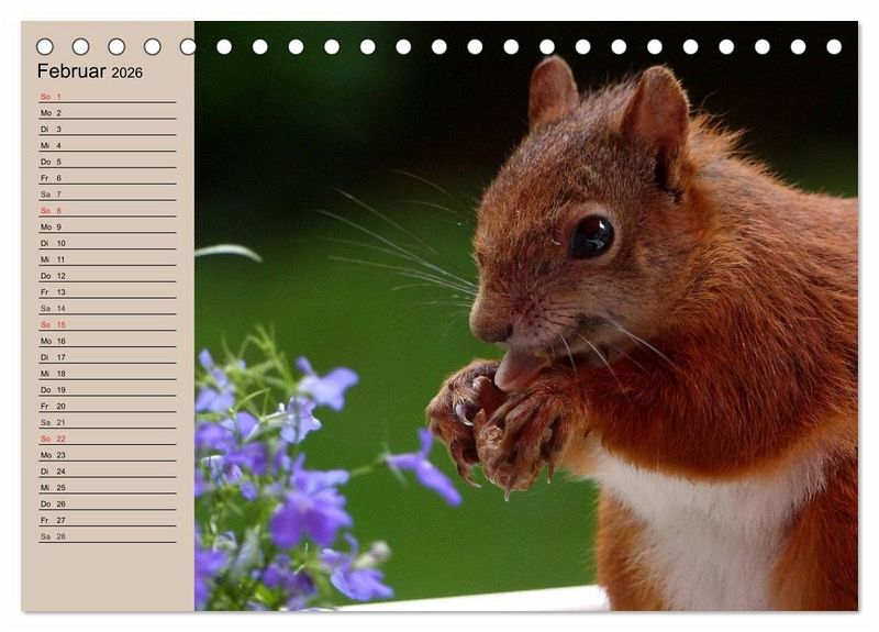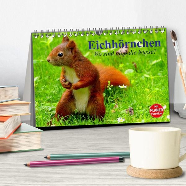 Eichhörnchen sind süß und flink. Sie verstecken ihren Wintervorrat um in der kalten Jahreszeit nicht zu verhungern. Alle Verstecke können sie sich aber nicht merken, denn viele eingegrabene Samen beginnen im Frühjahr in Beeten und Gärten zu keimen. Ein Planer mit niedlichen Eichhörnchen für die ganze Familie.