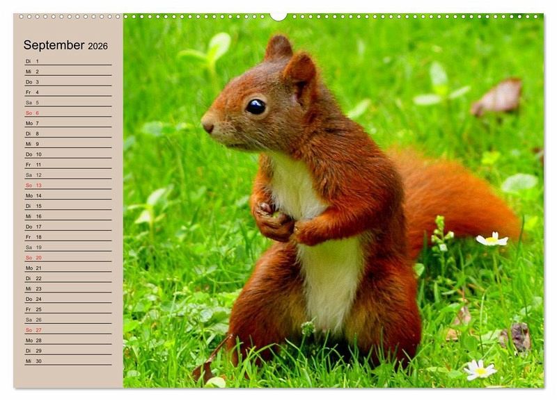 Eichhörnchen sind süß und flink. Sie verstecken ihren Wintervorrat um in der kalten Jahreszeit nicht zu verhungern. Alle Verstecke können sie sich aber nicht merken, denn viele eingegrabene Samen beginnen im Frühjahr in Beeten und Gärten zu keimen. Ein Planer mit niedlichen Eichhörnchen für die ganze Familie.