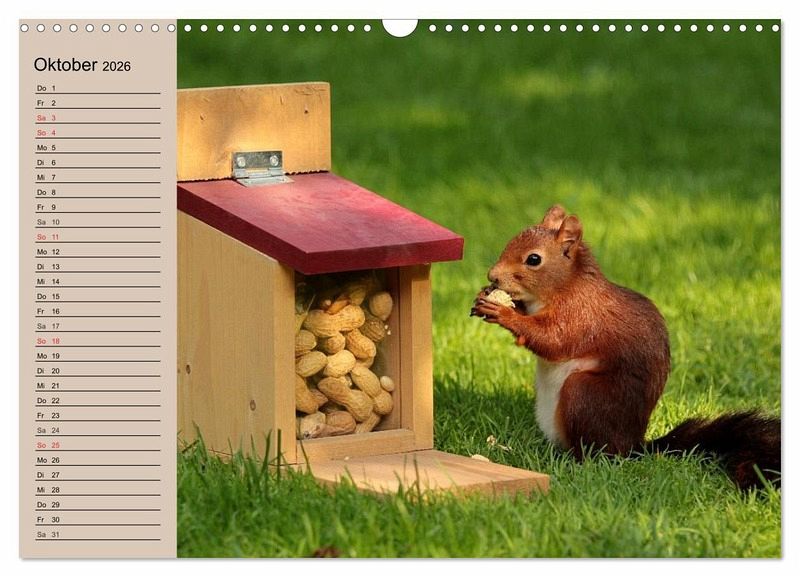 Eichhörnchen sind süß und flink. Sie verstecken ihren Wintervorrat um in der kalten Jahreszeit nicht zu verhungern. Alle Verstecke können sie sich aber nicht merken, denn viele eingegrabene Samen beginnen im Frühjahr in Beeten und Gärten zu keimen. Ein Planer mit niedlichen Eichhörnchen für die ganze Familie.