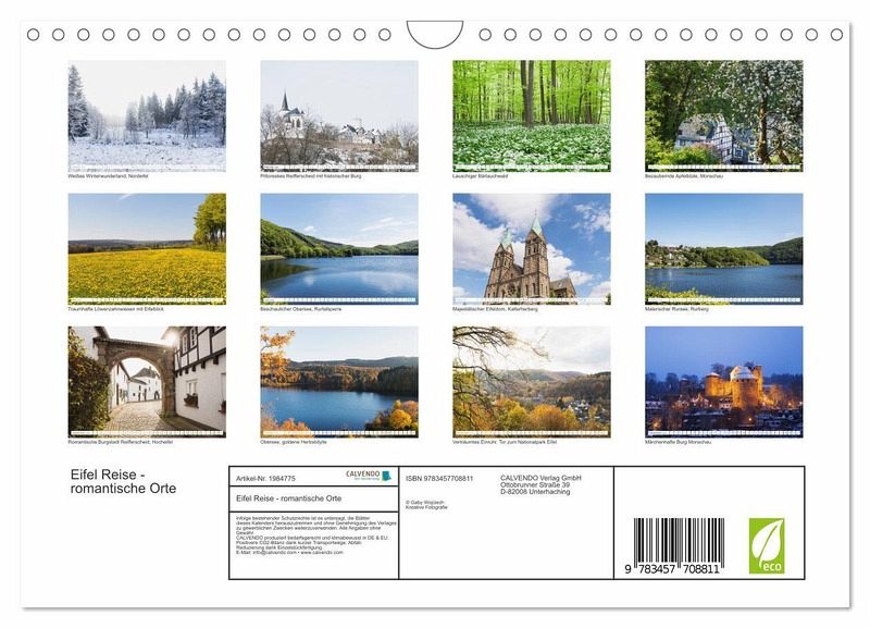 QUALITÄT - Hochwertiger Fotokalender mit 12 wunderschönen Motiven auf lichtbeständigem Bilderdruckpapier, robuste Spiralbindung mit Aufhängebügel.NACHHALTIG - deutliche Abfallreduzierung durch bedarfsgerechte Einzelstückfertigung, umweltfreundliches FSC-zertifiziertes Papier, Produktion in Deutschland, klimabewusste Logistik.PERFEKTES GESCHENK - Kalender für Freunde und Familie, für Kinder und Erwachsene, jung und alt, zu Weihnachten, Geburtstag oder zwischendurch.VIELFALT - Bildkalender in verschiedenen Formaten, z.B. DIN A5, DIN A4, DIN A3 sowie DIN A2. Ob Naturmotiv, Gemälde oder Fotos, ideal für ein persönliches Wohlfühlambiente.Traumhafte Nordeifel. von Autor(in): Gaby Wojciech