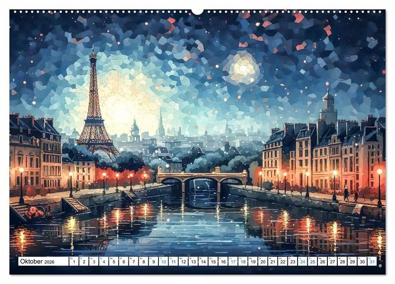 Entdecken Sie Paris neu mit diesem farbenfrohen KI Kalender "Eiffelturm: Kreativ anders". Jeder Monat präsentiert den ikonischen Eiffelturm in einer einzigartigen stilistischen Interpretation, von klassischer Eleganz bis hin zu moderner Kunst. Tauchen Sie ein in die Vielfalt der Farben und erleben Sie Paris aus neuen Perspektiven. Perfekt für Kunstliebhaber und Paris-Fans - dieser Kalender bringt die Magie der Stadt der Lichter in Ihr Zuhause. Holen Sie sich jetzt "Eiffelturm: Kreativ anders" und lassen Sie sich jeden Monat aufs Neue verzaubern.