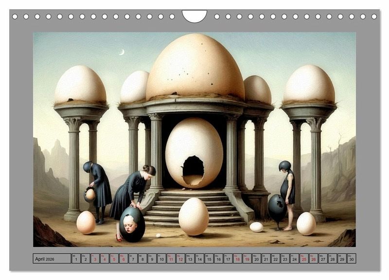 Entdecke eine außergewöhnliche Bildersammlung, in der die Grenzen zwischen Realität und Fantasie verschwimmen. Bizarre, surrealistische Szenen laden dich ein, eine Welt voller unerwarteter Wendungen zu erleben. Hier werden Eier zu Symbolen einer Traumwelt, die das Gewöhnliche ins Fantastische verwandelt. Lass dich überraschen und von der Kunst der surrealen Bildsprache faszinieren!
