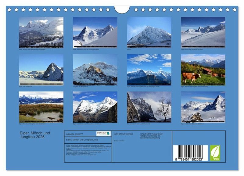 QUALITÄT - Hochwertiger Fotokalender mit 12 wunderschönen Motiven auf lichtbeständigem Bilderdruckpapier, robuste Spiralbindung mit Aufhängebügel.NACHHALTIG - deutliche Abfallreduzierung durch bedarfsgerechte Einzelstückfertigung, umweltfreundliches FSC-zertifiziertes Papier, Produktion in Deutschland, klimabewusste Logistik.PERFEKTES GESCHENK - Kalender für Freunde und Familie, für Kinder und Erwachsene, jung und alt, zu Weihnachten, Geburtstag oder zwischendurch.VIELFALT - Bildkalender in verschiedenen Formaten, z.B. DIN A5, DIN A4, DIN A3 sowie DIN A2. Ob Naturmotiv, Gemälde oder Fotos, ideal für ein persönliches Wohlfühlambiente.das "Dreigestirn" Eiger, Mönch und Jungfrau ist eines der markantesten Bergpanoramen der Schweizer Alpen von Autor(in): Bettina Schnittert